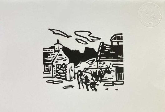 SIR KYFFIN WILLIAMS RA (1918-2006) linocut - 'Cows', unsigned, RCA embossed, 25 x 35cms