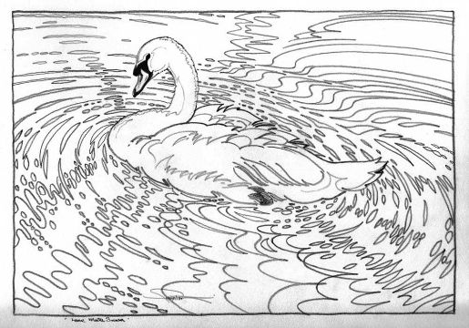 COLIN SEE-PAYNTON (b. 1946) graphite on paper - 'Lone Mute Swan', signed, 25 x 37cms