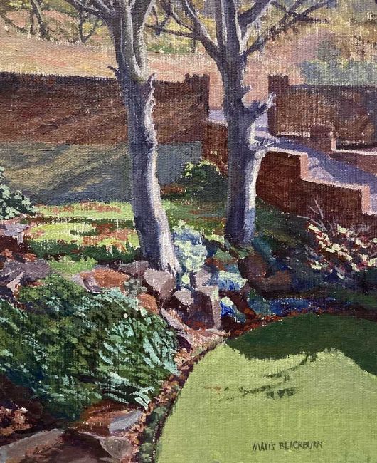 MAVIS BLACKBURN (1923-2005) oil on board - 'Park in Winter', signed, 30 x 26cms