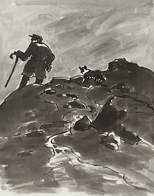 SIR KYFFIN WILLIAMS RA (1918-2006) artist's proof - 'Shepherd on Hill and Dog', signed, 50 x 40cms