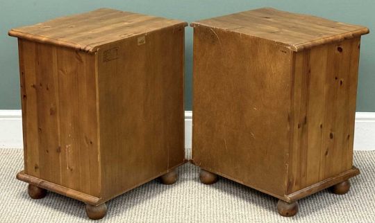 PAIR OF SATIN PINE BEDSIDE THREE-DRAWER CHESTS, with shaped tops, 62 (h) x 50 (w) x 41cms (d)Provenance: private collection Conwy