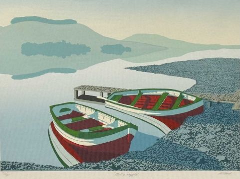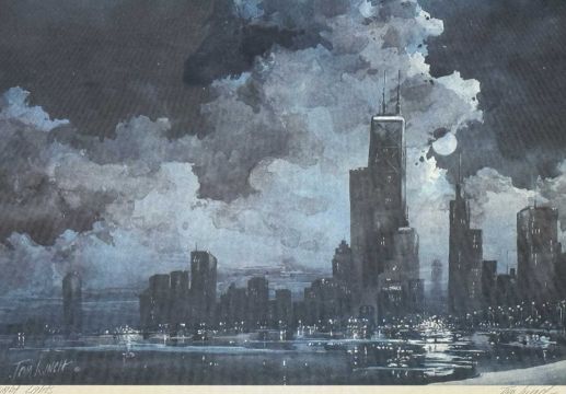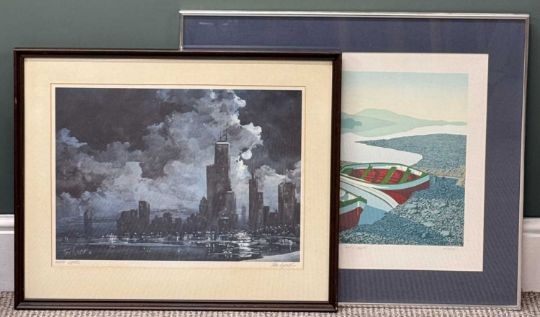 ‡ TOM LYNCH print - 'Night Lights, Chicago City Skyline', signed, 37 x 50cms; and M. WOOD print - 'Not a Ripple', signed and numbered, 44 x 53cms (2)Provenance: private collection Denbighshire