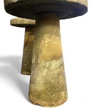 TWO ANTIQUE STADDLE STONES, 70 (h) x 54cms (diam.)Provenance: private collection Denbighshire