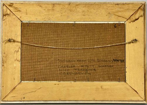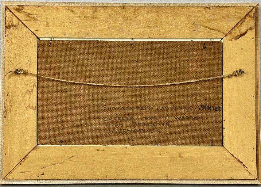 ‡ CHARLES WYATT WARREN (1908-1993) oil on board - entitled verso 'Snowdon from Llyn Llydaw, Winter', signed lower left, 18.5 x 33cmsProvenance: private collection GwyneddComments: studio frame