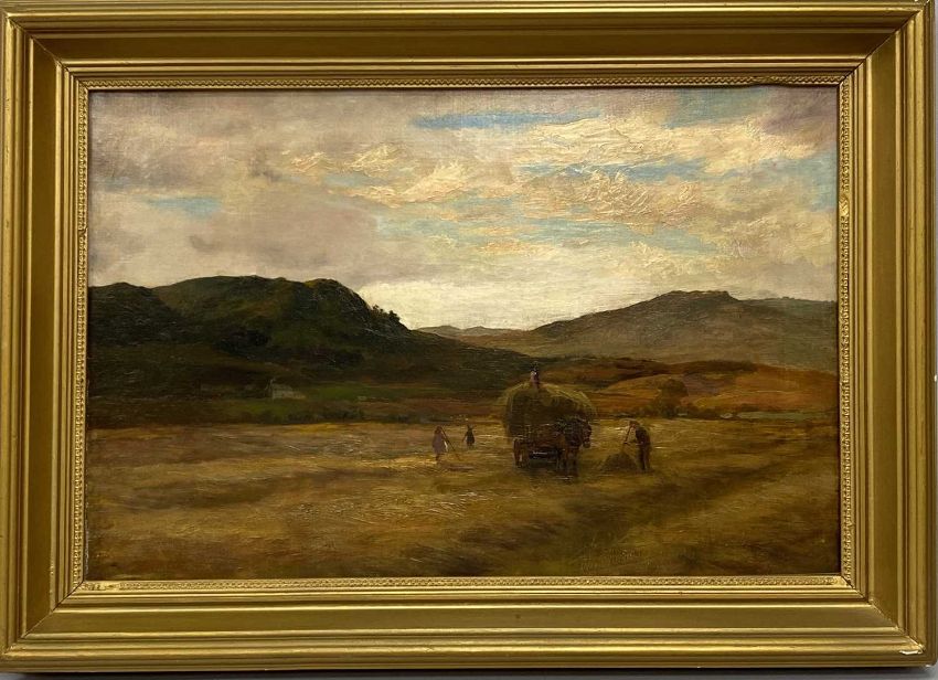 UNKNOWN BRITISH SCHOOL (late 19th/early 20th century) oil on canvas - haymaking, indistinctly signed lower left, 39 x 60cmsProvenance: private collection CheshireComments: framed