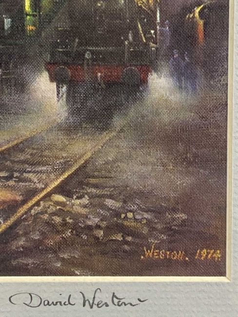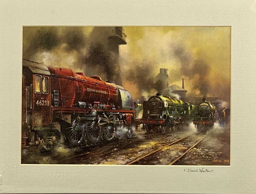 ‡ DAVID WESTON (British, 1935-2011) two colour prints - railway locomotives, signed on the mounts in pencil, 21.5 x 32.5cmsProvenance: private collection GwyneddComments: mounted, unframed