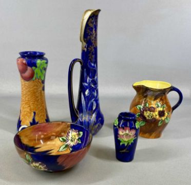 ASSORTED 20TH CENTURY CERAMICS, including Burleigh moulded jug, no. 5063, 18cms (h); Arthur Wood Dick Whittington jug, 20cms (h); Royal Doulton slender ewer, 31cms (h); two Portmeirion Botanic Garden vases, 20cms (h), etc.Provenance: deceased estate Conwy