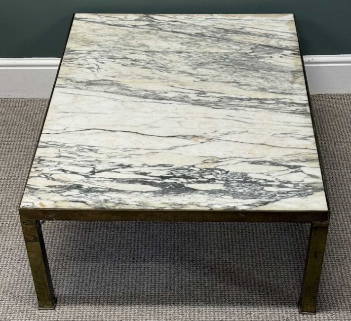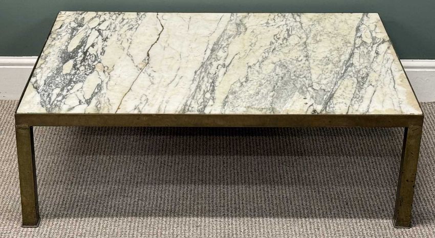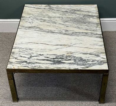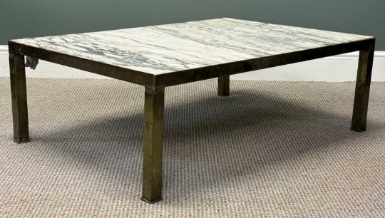 CONTEMPORARY RECTANGULAR OCCASIONAL TABLE, with brass frame and marble top, 36 (h) x 107 (w) x 76cms (d)Provenance: deceased estate Ynys Môn