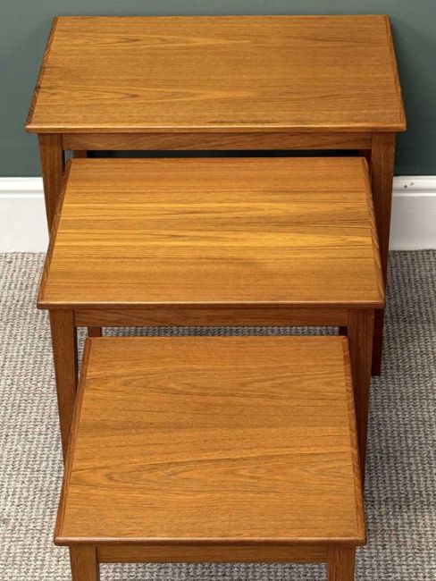 KVALITET FORM FUNKTION TEAK NEST OF THREE TABLES, design no. 42, 50 (h) x 59 (w) x 40cms (d) the largestProvenance: private collection Conwy
