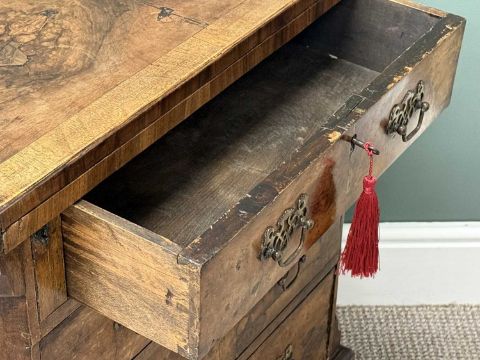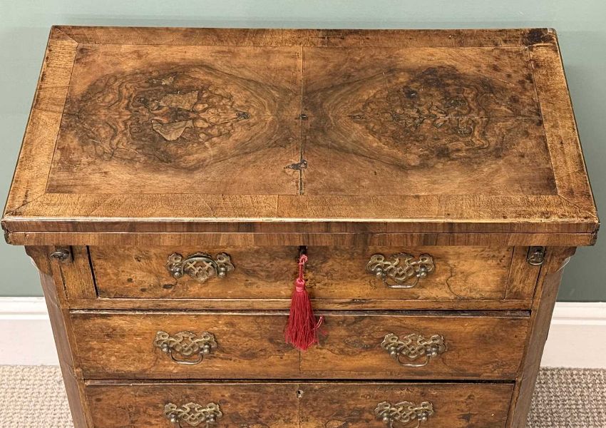 EARLY 20TH CENTURY BURR WALNUT BACHELOR'S CHEST, four drawers with a fold-over top, 77 (h) x 61 (w) x 32cms (d)Provenance: private collection Denbighshire
