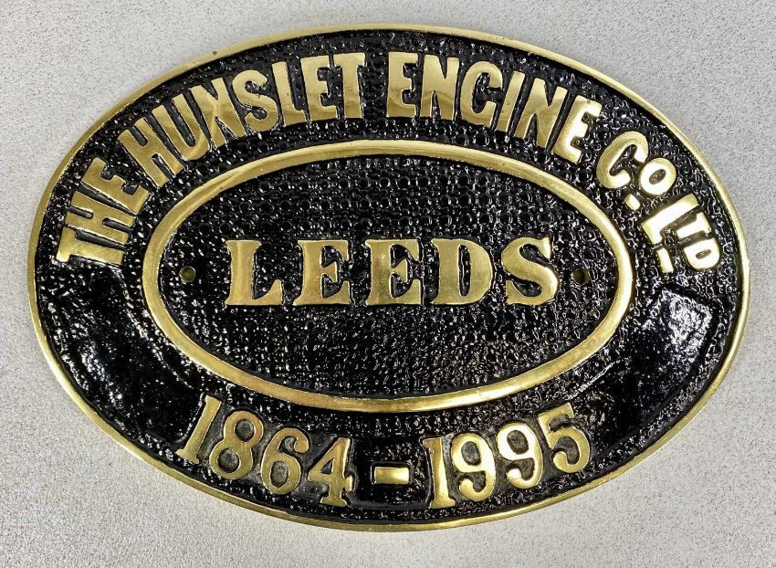 BRASS PLATE COMMEMORATING THE CLOSURE OF HUNSLET ENGINE COMPANY LTD, LEEDS, 1864-1995, 19 x 28cmsProvenance: private collection Gwynedd