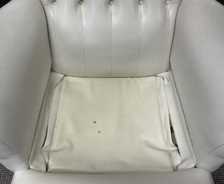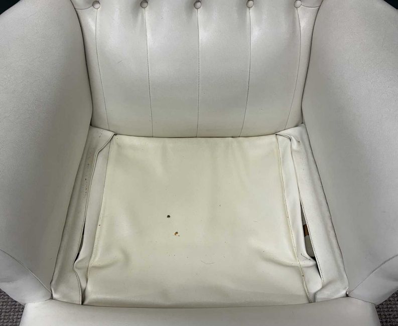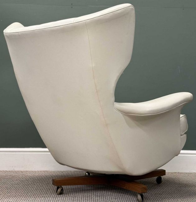 G PLAN GOLD LABEL CREAM VINYL REVOLVING ARMCHAIR, with button back, 99 (h) x 92 (w) x 50cms (seat depth)Provenance: deceased estate Conwy