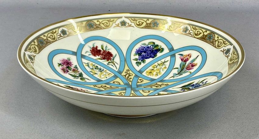 COLLECTABLE CERAMICS, comprising Minton limited edition (125/9500) 'Flowers of Love' bowl, designed by Neil Faulkner, 30cms (diam.); Old Tupton Ware seated cat, 18cms (h); miniature Bohemian scent bottle with gilded brass cap and chain; and Bavarian porcelain scent atomiserProvenance: private collection Conwy