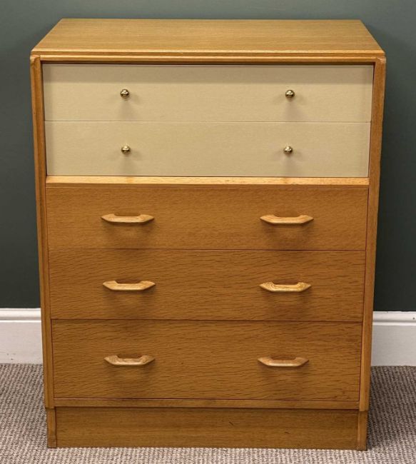 G PLAN GOLD LABEL TWO-DOOR WARDROBE, 172 (h) x 92 (w) x 54cms (d); and five-drawer chest, 97 (h) x 76 (w) x 46cms (d) (2)Provenance: deceased estate Conwy