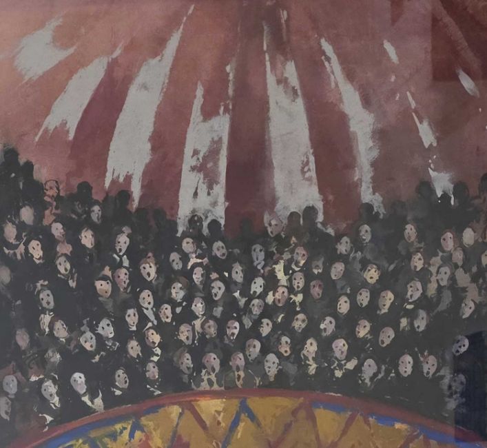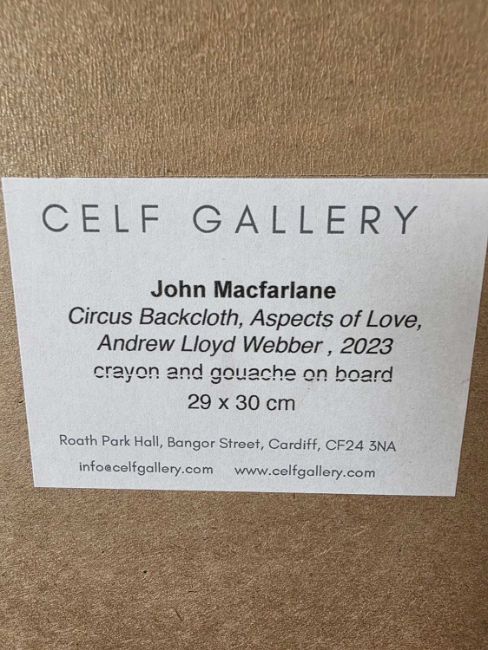 JOHN MACFARLANE (b. 1948) crayon and gouache on board - entitled 'Circus Backcloth, Aspects of Love' on Celf Gallery label, 29 x 32cmsGallery price: £800Provenance: donated to aid City HospiceComments: framed and glazed