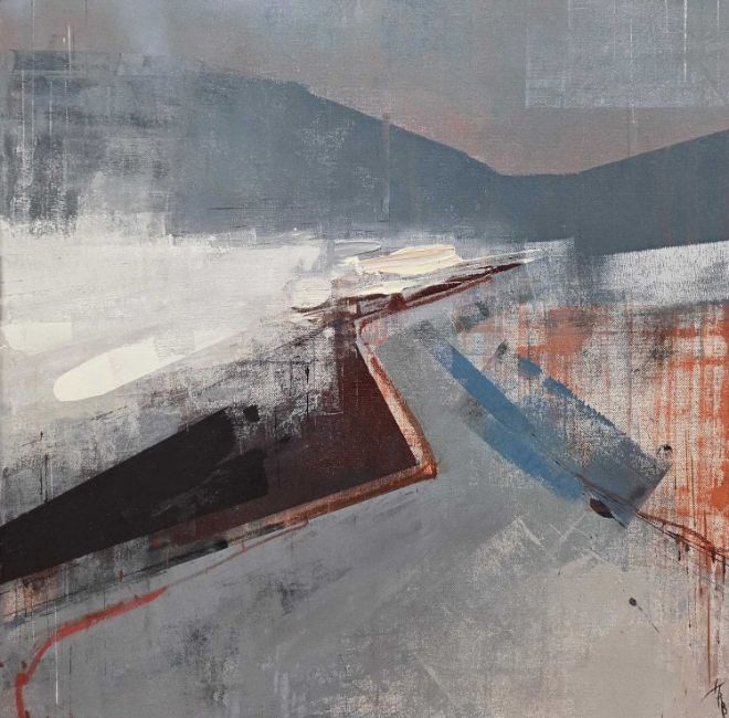 KARINA ROSANNE BARRETT oil on canvas - 'The Path to Moel Eilio and the Sledging Field', initialled, 60 x 60cmsProvenance: donated to aid City HospiceComments: framed