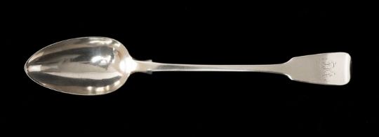 WILLIAM IV SILVER BASTING OR STUFFING SPOON, William Collins, London 1833, fiddle pattern with engraved initials to the handle, 30cms, 3.6oztProvenance: private collection GlamorganComments: hallmarks good, overall good.