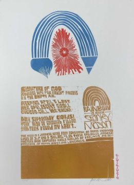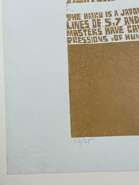 ‡ PAUL PETER PIECH (American, lived/worked Wales, 1920-1996) limited edition (22/25) woodcut print - Japanese verse entitled, 'Rainbow, Three Haiku', signed and dated 1980, 63 x 45cmsProvenance: private collection SuffolkComments: unframed, mounted on board