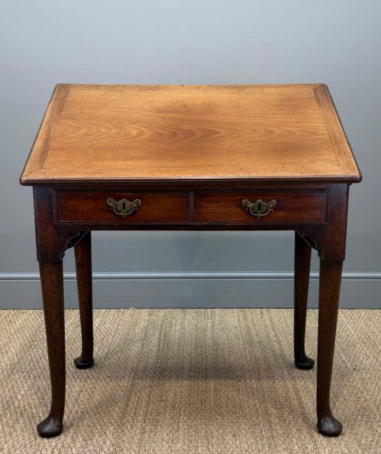 GEORGE III MAHOGANY DRAFTING OR ARCHITECT'S DESK, hinged ratchet lectern top, two frieze drawers with bat-wing handles, pull-out side extensions, caddy moulded angles, club legs with pad feet, 74 (h) x 87 (w) x 54cms (d)Provenance: private collection MonmouthshireComments: drawer sectional walls and under-table rear exiting storage section missing (there appear to be runners under the table to support a storage compartment), normal stains, light scratches and bumps, colour variation, inspection advised