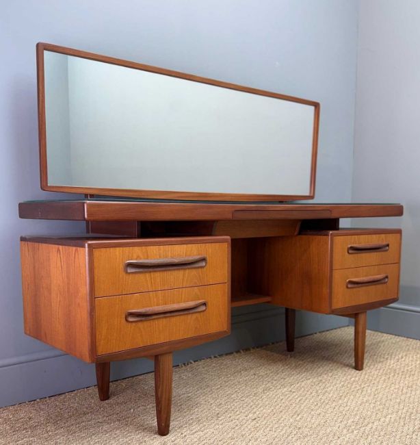 G-PLAN MID-CENTURY 'NEW FRESCO' TEAK DRESSING TABLE, by Victor Wilkins circa. 1977, 120 (h) x 150 (w) x 46cms (d)Provenance: consigned via West WalesComments: slight fade to table top, overall excellent used condition, inspection advised