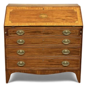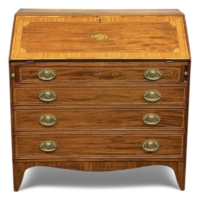 MAHOGANY & INLAID BUREAU, early 19th century, 106 (h) x 106 (w) x 50cms (d)Provenance: private collection Merseyside
