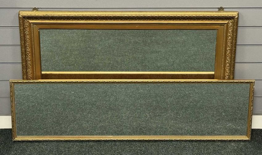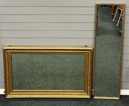 GILT FRAMED WALL MIRRORS, 70 x 110cms and 125 x 34cms (2)Provenance: private collection Cheshire