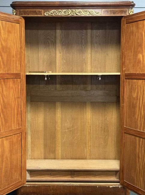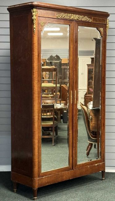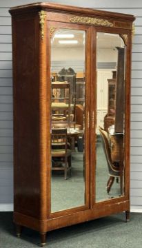 LOUIS XV STYLE TWO-DOOR MIRROR ARMOIRE, with bevelled glass and brass mounts, 225 (h) x 130 (w) x 48cms (d)Provenance: private collection Cheshire