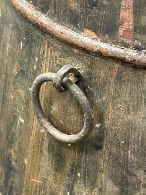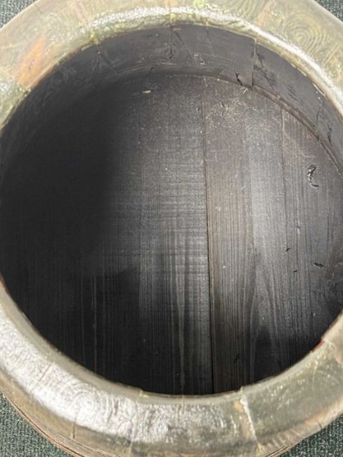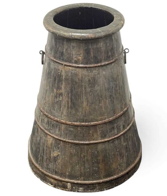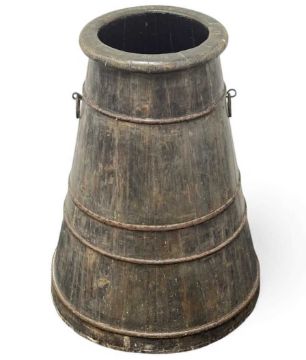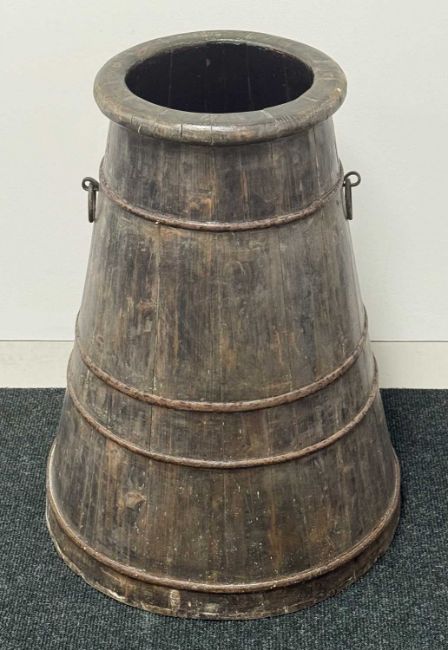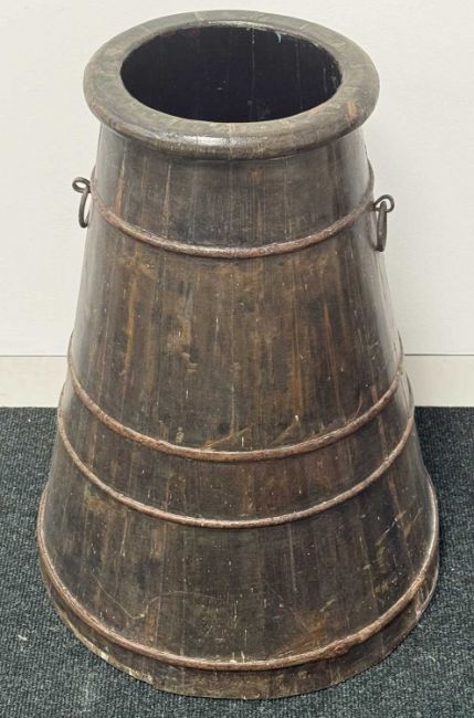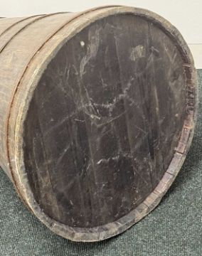 19TH CENTURY SHIP'S WATER CHURN, coopered wood with steel bands and ring handles, with lid, 71cms (h)Provenance: private collection