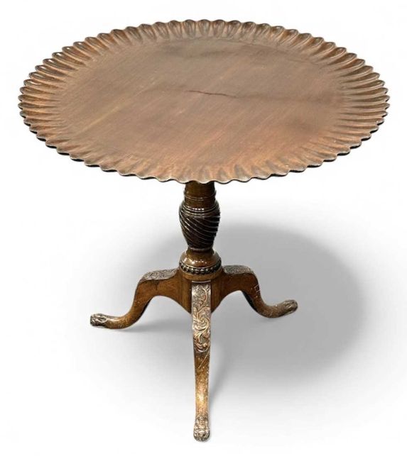 VICTORIAN SCALLOPED CIRCULAR TILT-TOP MAHOGANY TEA TABLE, on tripod supports, 72 (h) x 78cms (diam.)Provenance: private collection Cheshire