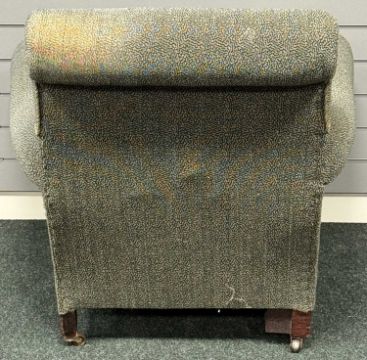 EDWARDIAN UPHOLSTERED EASY CHAIR, on bun feet, 86 (h) x 92 (w) x 68cms (d)Provenance: private collection Cheshire
