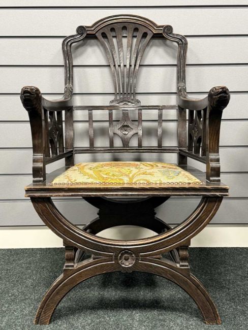 UNUSUAL VICTORIAN CARVED OAK ARMCHAIR, c. 1890, 87 (h) x 54cms (w)Provenance: private collection Cheshire