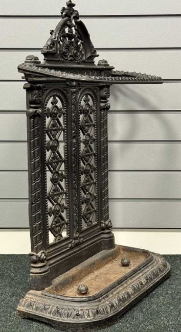 VICTORIAN CAST IRON STICK STAND, painted black, 83 (h) x 56 (w) x 25cms (d)Provenance: private collection Cheshire