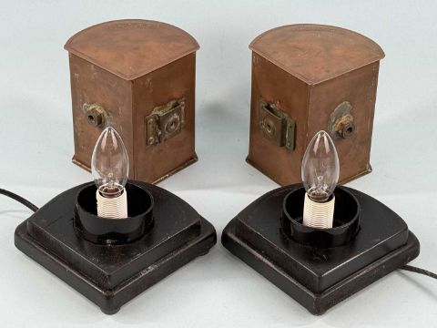 PAIR OF SEAHORSE PORT & STARBOARD COPPER LAMPS, mounted on modern wooden stands with electrical fittings, 20cms (h)Provenance: private collection
