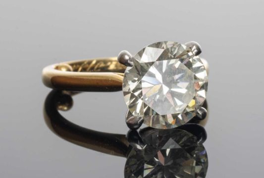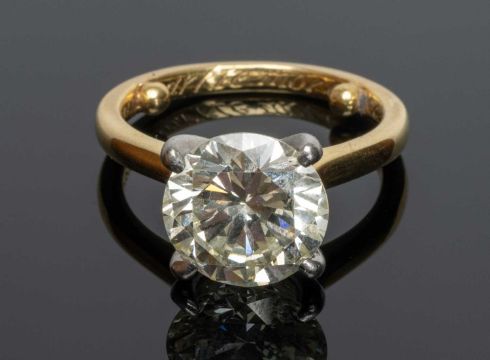 18CT WHITE GOLD DIAMOND SOLITAIRE RING, brilliant-cut claw-set stone, 3.49cts, clarity VS, colour L, two balls inside shank reducing internal diameter to size GProvenance: private collection WrexhamComments: engraved 'stan you sparkle ... (illegible)xxx'