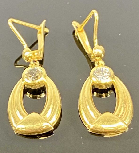 TWO PAIRS OF 9CT GOLD EARRINGS, full hoop, 25mms (diam.), and pierced oval drop set with stones, 10g grossProvenance: private collection Denbighshire