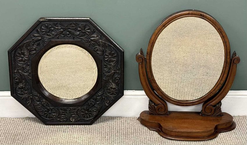 ASSORTED FURNITURE, to include Arts & Crafts style spinning chair, corner whatnot, 148cms (h), tea table, mirror, and swing mirror (5)Provenance: deceased estate Conwy