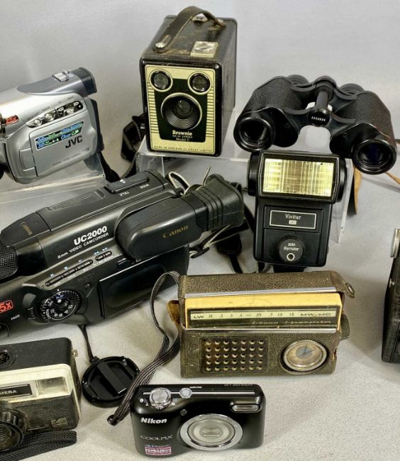 LARGE QUANTITY OF CAMERAS & ACCESSORIES, including Nikon F65 SLR, Nikon D40 bridge camera, various lenses, vintage cameras, etc.Provenance: private collection Conwy