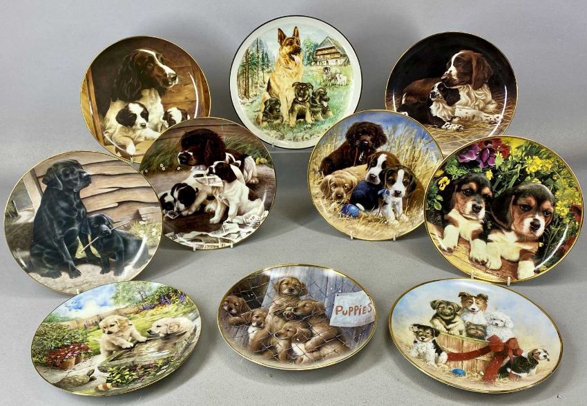 ASSORTED RESIN ANIMAL FIGURES, Danbury Mint collector's plates featuring dogs, etc.Provenance: deceased estate Ynys Môn