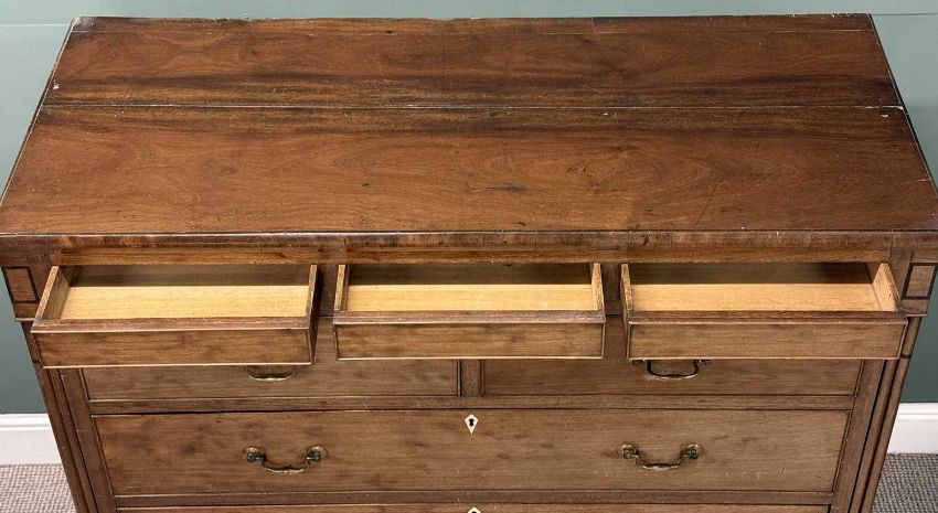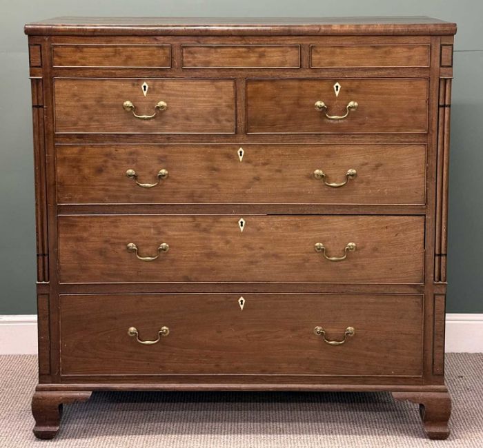 VICTORIAN MAHOGANY CHEST OF TWO OVER THREE DRAWERS, on bracket feet, with three upper secret drawers, ivory escutcheons, 136 (h) x 136 (w) x 55cms (d)Provenance: deceased estate ConwyGOV.UK Ivory content- to comply with current regulation - self-declaration form completed for the sale of this item - Submission reference YPHBASEP