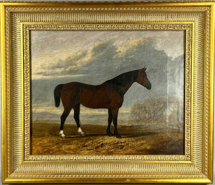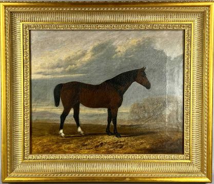 THOMAS HENWOOD (1797-1861) oil on canvas - bay horse in landscape, signed and dated 1849 lower left, 44 x 54cmsProvenance: private collection GwyneddComments: framed and glazed