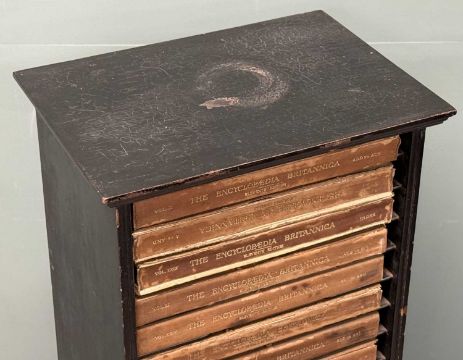 VINTAGE ENCYCLOPÆDIA BRITANNICA VOLUMES in presentation bookcase, 133 (h) x 28 (w) x 38cms (d)Provenance: private collection Conwy