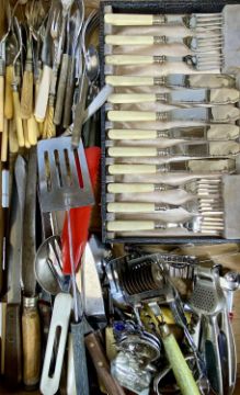 ASSORTED PLATED CUTLERY, including community plate part set, cased set of dessert knives with mother of pearl handles, etc.Provenance: deceased estate Conwy