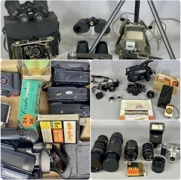 LARGE QUANTITY OF CAMERAS, ACCESSORIES, BINOCULARS, etc.Provenance: deceased estate Conwy