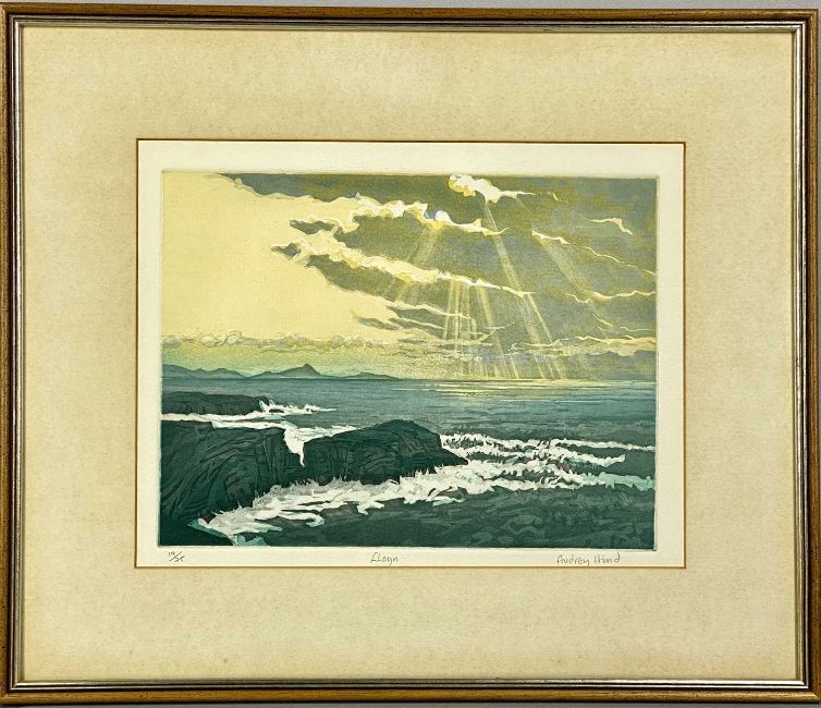 ‡ FIVE AUDREY HIND PRINTS to include two limited edition prints –'Lleyn' (19/75), 30 x 22cms, 'Tŷ Newydd', (11/75), 22 x 17cms; two limited edition etching aquatints - 'Puffin Island' (16/100), 19 x 12cms, - 'Llanddwyn' (16/100), 19 x 13.5cms; and etching mono - 'Beaumaris [castle]', 29 x 22cms, all signed (5)Provenance: deceased estate Buckinghamshire