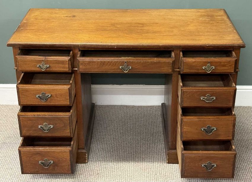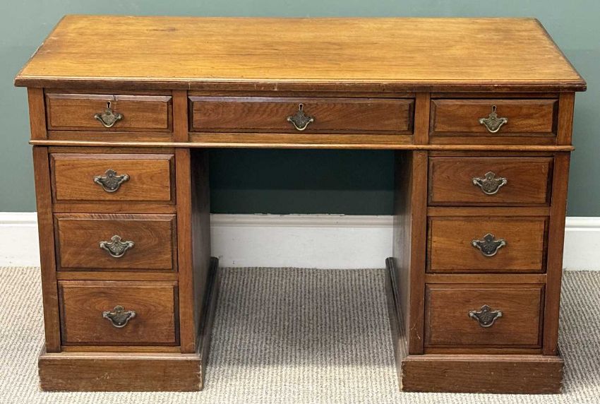 EDWARDIAN MAHOGANY TWIN-PEDESTAL DESK, nine drawers in total, 78 (h) x 123 (w) x 60cms (d)Provenance: private collection Conwy