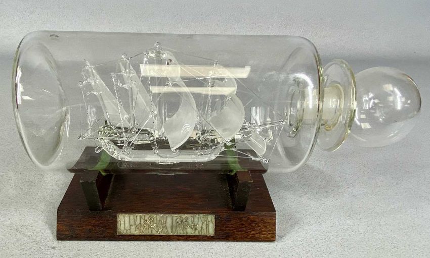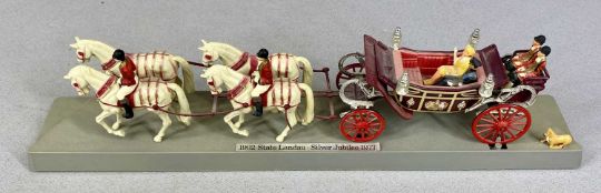 CORGI SCALE MODEL 1902 STATE LANDAU - THE QUEEN'S SILVER JUBILEE 1977, model 41, boxed; and a blown glass ship in bottle, 30cms (h)Provenance: private collection Gwynedd