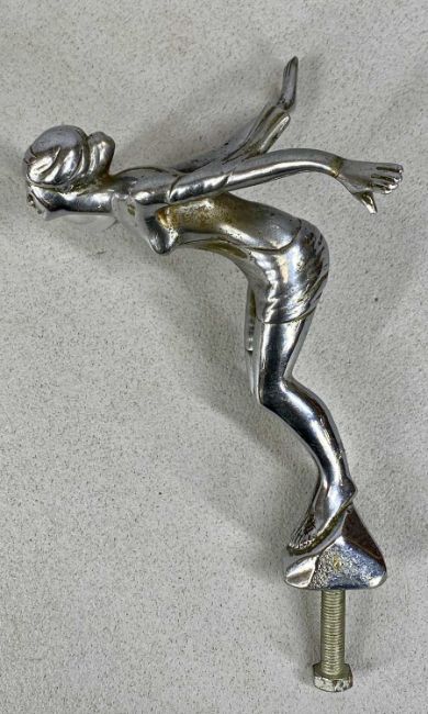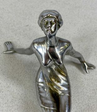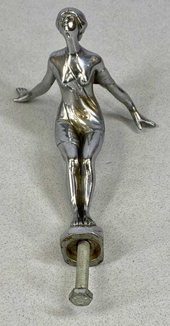 CHROME SPEED NYMPH CAR MASCOT, c. 1920, modelled as a lady with arms outstretched, stamped 'Reg Ed', 17cms (h)Provenance: private collection Anglesey