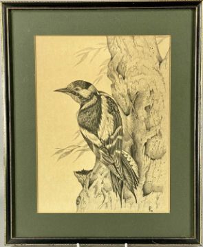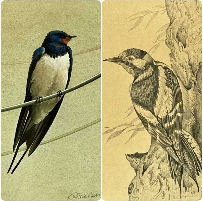 K. RICHARDSON watercolour - swallow, signed and dated lower right, 23 x 16cms; and ERIC PEAK pencil drawing - woodpecker, initialled and dated '76 lower right, artist's label verso, 29 x 22cms (2)Provenance: private collection Denbighshire