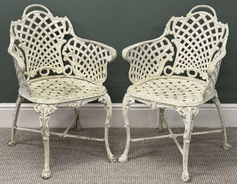 CAST METAL RETICULATED GARDEN FURNITURE, comprising circular top table, 68 (h) x 68cms (diam.), and four chairsProvenance: private collection Gwynedd