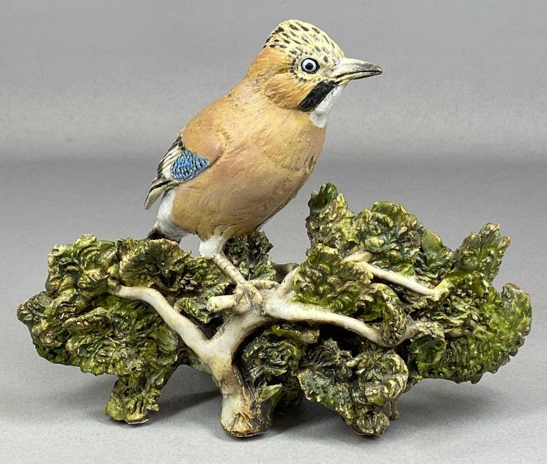 ‡ NEIL DALRYMPLE freestanding ceramic - Jay on foliage, signed and dated 2009, 20 (h) x 26 (w) x 12cms (d)Provenance: private collection Buckinghamshire